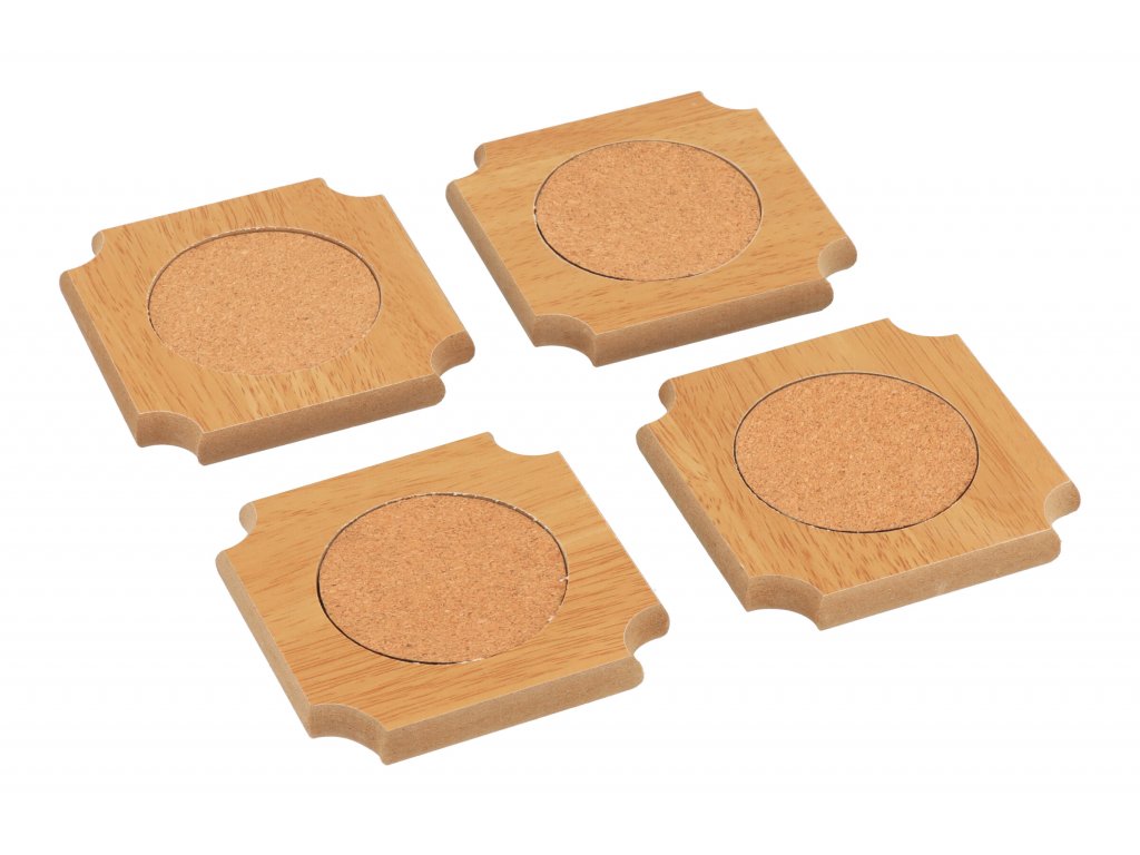 A poháralátétek MDF-ből, a poharak helye pedig parafából készült. A csomag tartalmaz egy praktikus állványt is, amely a figurák és a poháralátétek tárolására szolgál.