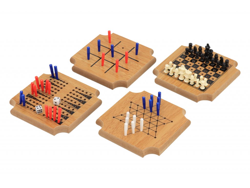 Egy 4 db alátétből és társasjátékból álló készlet, amely rengeteg szórakozást nyújt! Fordítsa meg az alátétet, és nézze meg, milyen játék van alatta elrejtve. Miközben a barátaival iszogat, választhat, hogy sakkozik, paintballozik, backgammonozik vagy kínai dámázik.