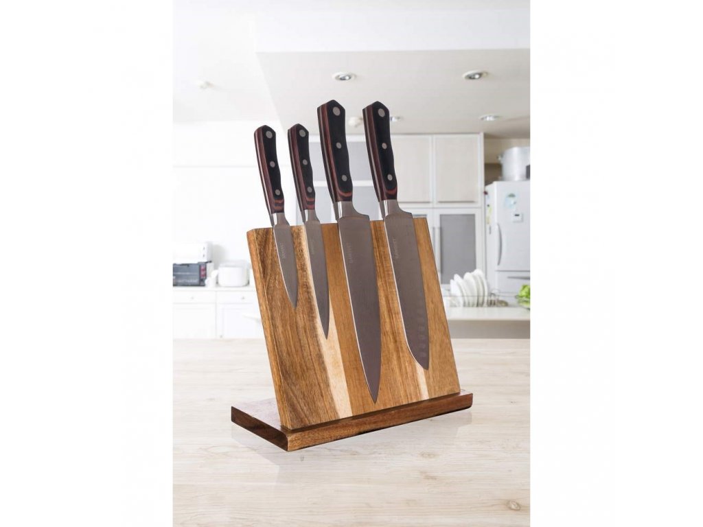 A késtartó belsejében egy erős mágnes található, amely biztosan tartja a késeket.