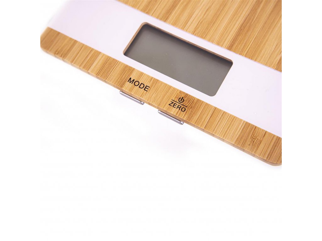 A digitális konyhai mérleg bambuszból és műanyagból készült. Dekoratív megjelenésével minden konyha dísze lesz.