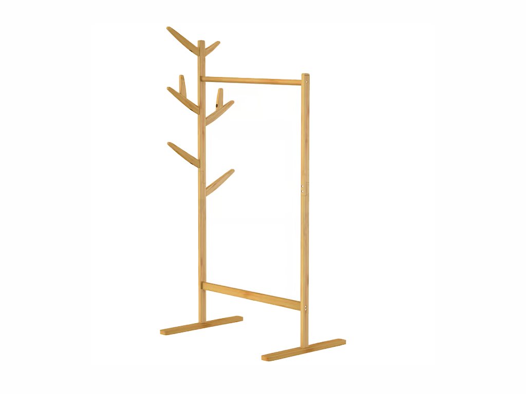 A természetes bambusz ruhatartó rengeteg helyet kínál kabátjaidnak, dzsekijeidnek és kiegészítőidnek, miközben nem foglal sok helyet. Akasztóival és klasszikus ruhaakasztó rúddal okos megoldást kínál a mindennapi használatra a folyosón, a hálószobában és az öltözőben.