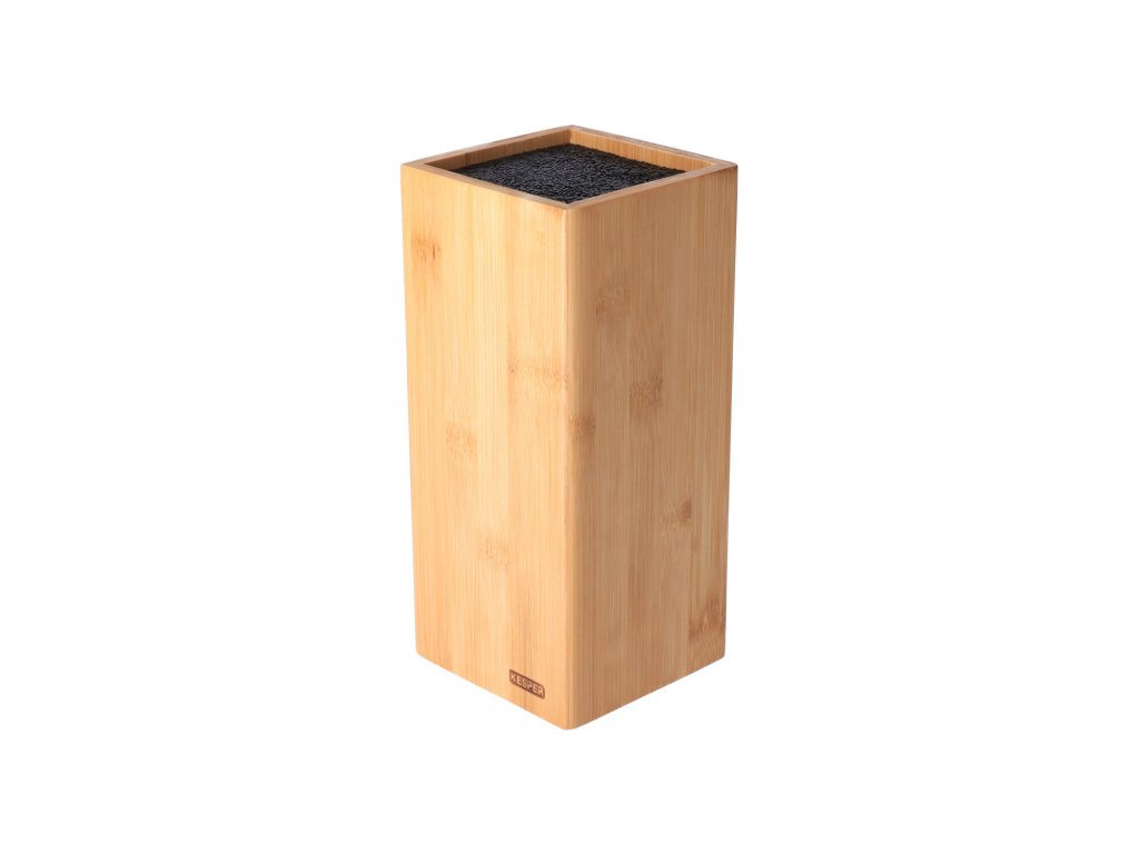 A késállvány természetes bambusz fából készült, amelyet a minőség és a tartósság jellemez, és garantálja, hogy a termék hosszú éveken át jól mutasson. Az állvány műanyag sörtékkel van töltve, amelyekbe a kések könnyen beleszúrhatók. A sörték kivehetők, így gond nélkül moshatóak. Az állvány nagyon elegánsan néz ki, és minden bizonnyal minden konyhában megtalálja a helyét.