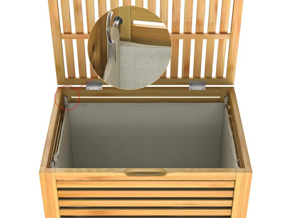 A 62 literes bambusz szennyestartó kosár elegendő helyet biztosít nagyobb mennyiségű ruhanemű számára. A kiváló minőségű, természetes bambuszból készült robusztus konstrukció nagy stabilitást és hosszú élettartamot garantál. A bambusz kiegészítők lakkozottak, így magasabb páratartalmú helyiségekbe is alkalmasak.