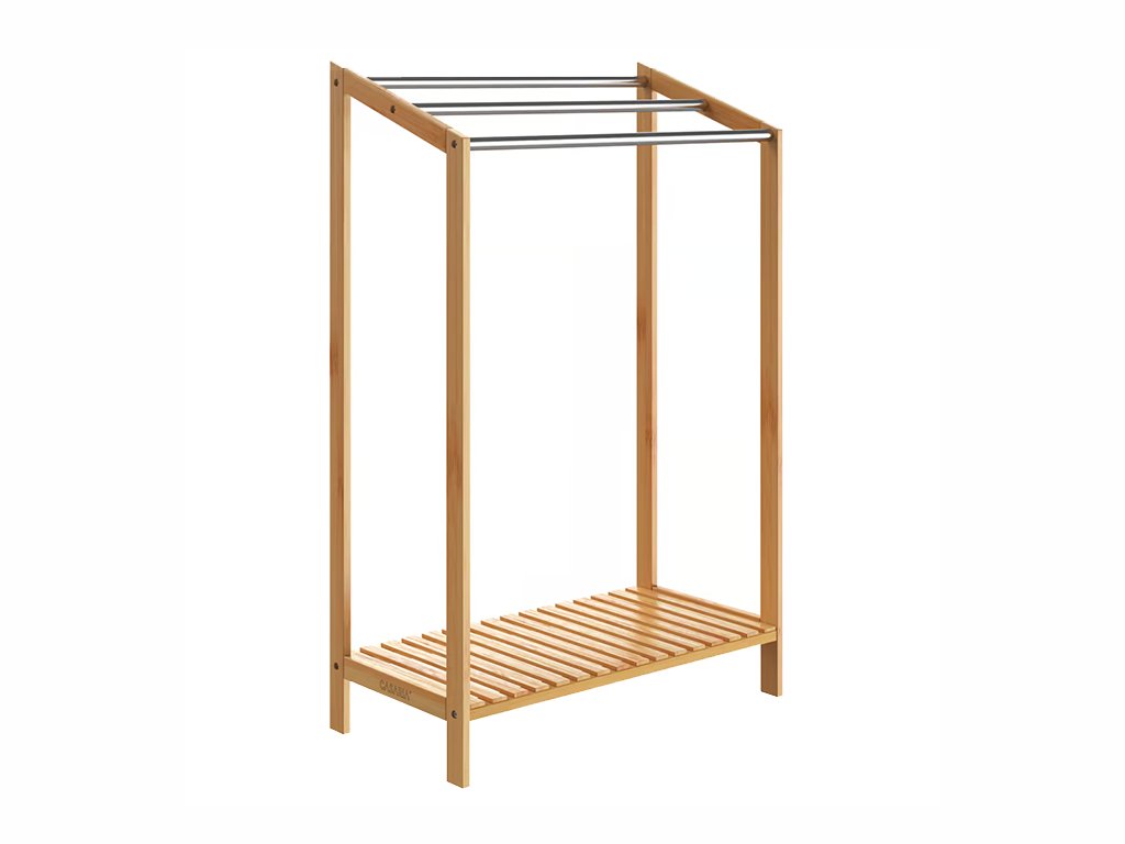 A szabadon álló törölközőtartó három, lépcső alakban elrendezett rúddal van felszerelve, ami biztosítja az optimális légáramlást, így a törölközők gyorsan száradnak kellemetlen szagok nélkül.
