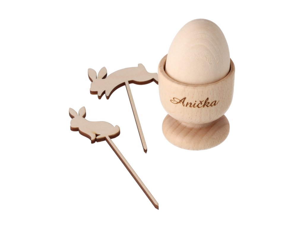 A készlet egy nyuszi mintás, ovális fadobozból áll, mely égetéssel készült. A dobozban egy névvel ellátott fa tojástartó, két fából készült húsvéti nyuszi és egy fatojás található. A gyerekek fantáziájuk szerint díszíthetik őket. Nagyszerűen illeszkedik a húsvéti készülődéshez tartozó kézműves foglalkozásokhoz, és személyesebb ajándék a megajándékozottaknak.