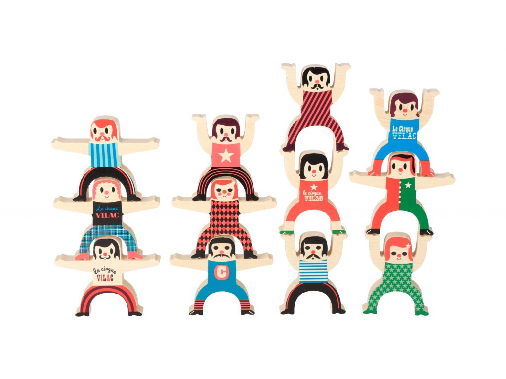 A cirkuszi akrobaták színes figurái különböző formájúak, így egymásra építheti őket, a cél pedig az, hogy az akrobatákból álló piramis ne dőljön össze. Hozzon létre különböző formákat, gyakorolja a koordinációt, a kézügyességet és a logikus gondolkodást.