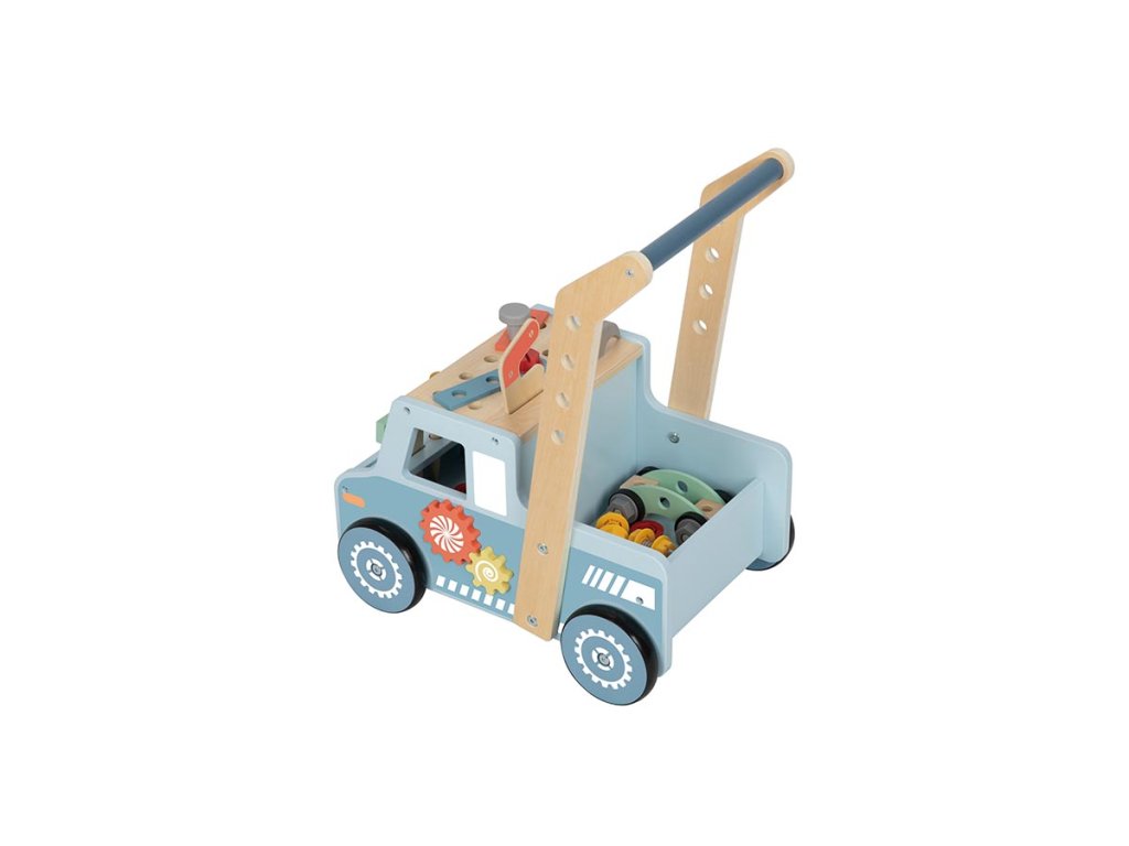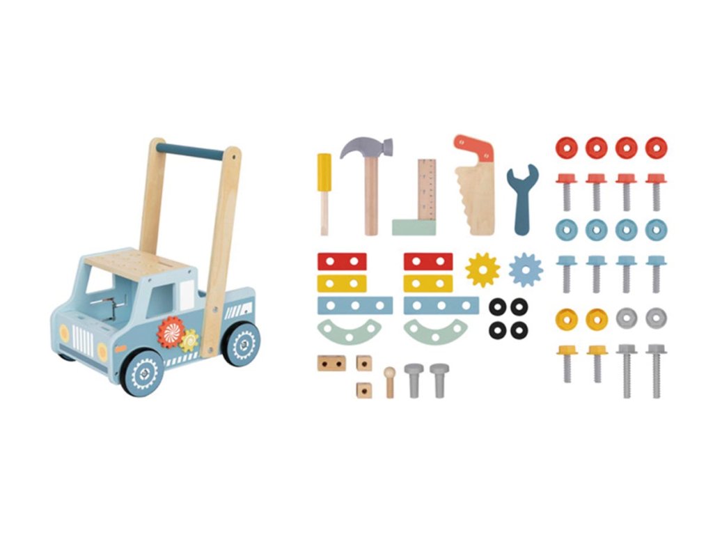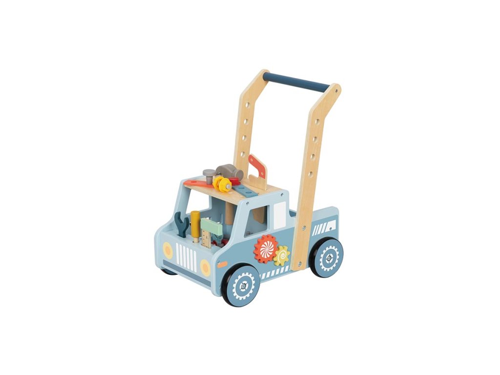 A játékautó alakú, multifunkcionális, fából készült járókeret ideális segítő az első lépésekhez, és szórakoztató játék hosszabb időre is. A gyerekek stabil támaszként használhatják járás közben, miközben játszhatnak a benne található gazdag szerszám- és kiegészítőkészlettel.