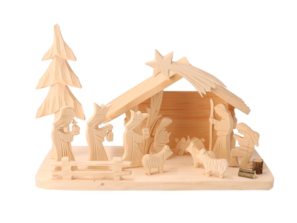 A hársfából és lucfenyőből készült jászol minden otthonba csodálatos karácsonyi hangulatot varázsol. A szeretettel megmunkált eredeti figurák teszik egyedivé ezt a jászlat.