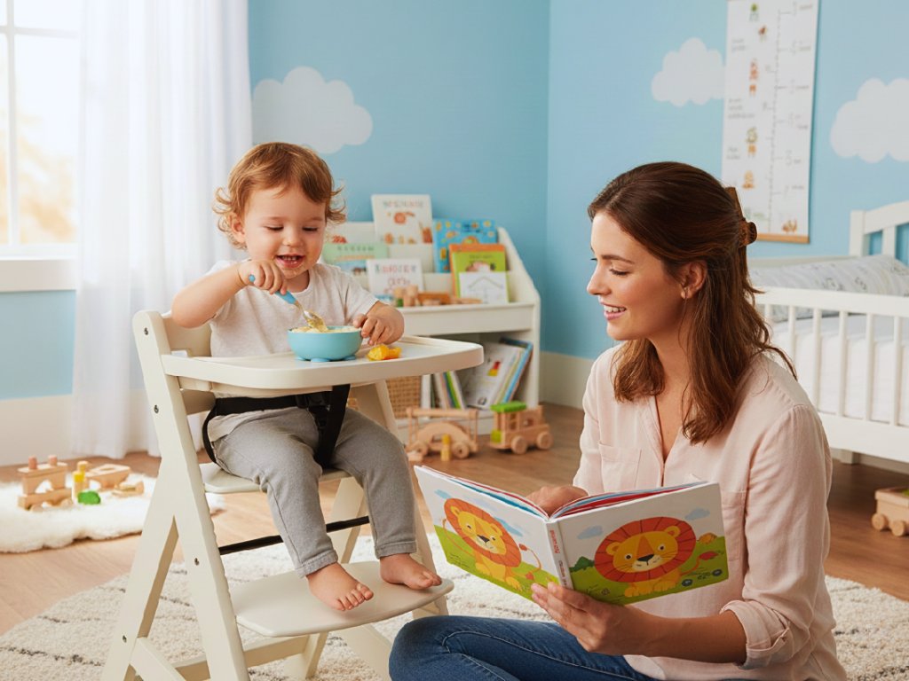 A szék egyik nagy előnye a stabilitása és ergonomikus kialakítása, amely elősegíti a gyermek helyes testtartását étkezés közben. A megemelt ülőhelyzetnek köszönhetően a gyermek a többi családtaggal együtt ülhet az asztalnál, ami természetes módon támogatja önállóságát, helyes étkezési szokásainak kialakulását és társas kapcsolatait. A biztonságot a szilárd szerkezet és a biztonsági öv garantálja, amely megakadályozza a nem kívánt elcsúszást.