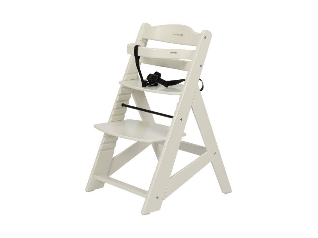 Az AtmoWood fehér fa étkezőszéke praktikus és elegáns megoldást kínál a legkisebbek kényelmes és biztonságos étkezéséhez. Könnyű, mégis stabil kialakításának köszönhetően jól illeszkedik bármilyen belső térbe, és egyszerű karbantartást biztosít.