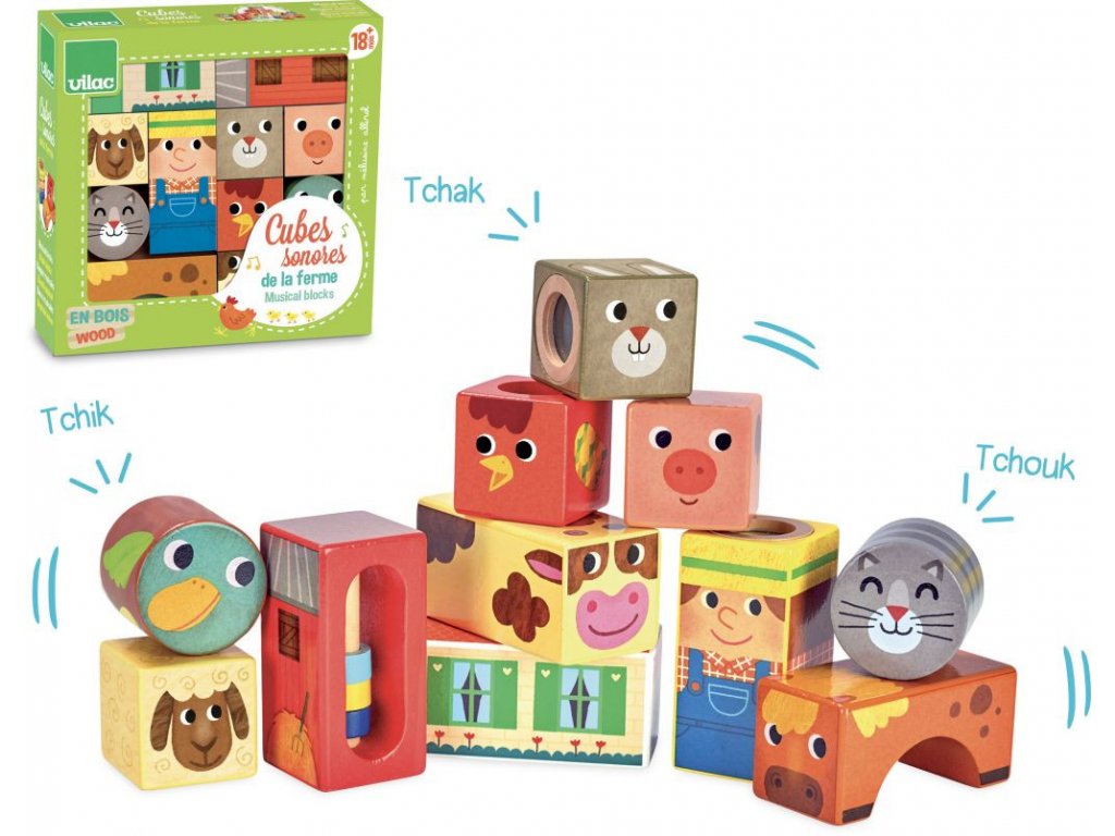 A farmos fakockák még a legkisebbek számára is szórakoztatóvá válnak. Megtanulhatják felismerni a farmon élő állatokat, felfedezhetik a hangokat és gyakorolhatják finommotoros képességeiket.