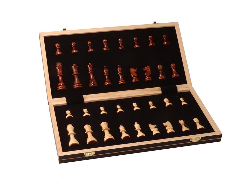 A 49 × 49 cm-es fából készült mágneses sakk ideális választás a klasszikus társasjátékok szerelmeseinek, akik az elegancia, a praktikum és a tartósság kombinációját keresik. Az összecsukható kialakításnak köszönhetően a sakktábla tárolódobozként is szolgál a bábuk számára, így a játék mindig használatra kész és könnyen hordozható. A precízen megmunkált, mágneses bábukkal ellátott sakkkészlet kényelmes játékot biztosít otthon és útközben is.