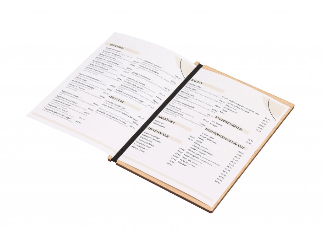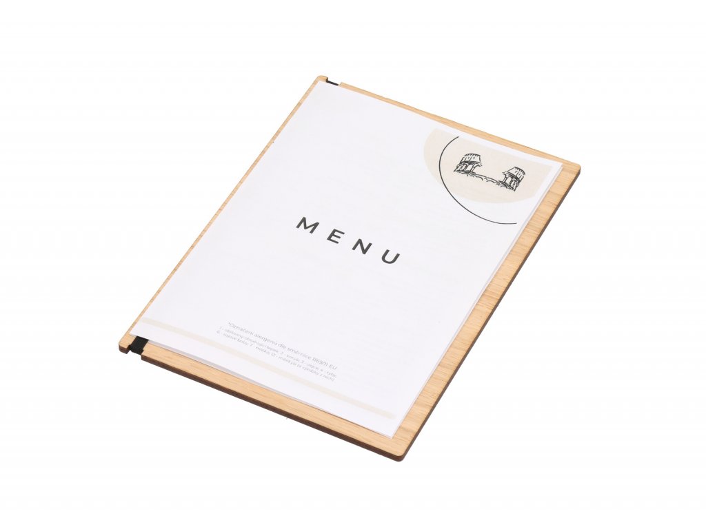 Az egyszerű és világos étlap minden étterem alapja, ezért készítettünk egy tölgyfa rétegelt lemezből készült étlapot. Egyszerűen helyezze be a nyomtatott étlapot a szoros gumi mögé, és máris viheti az étterem vendégeinek!