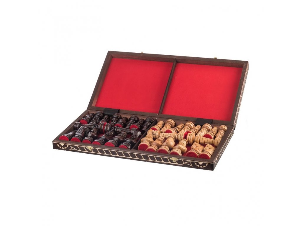Az eredeti, kézzel faragott fából készült sakk-készlet tágas játéktérrel és kidolgozott részletekkel biztosítja a játék maximális élvezetét.