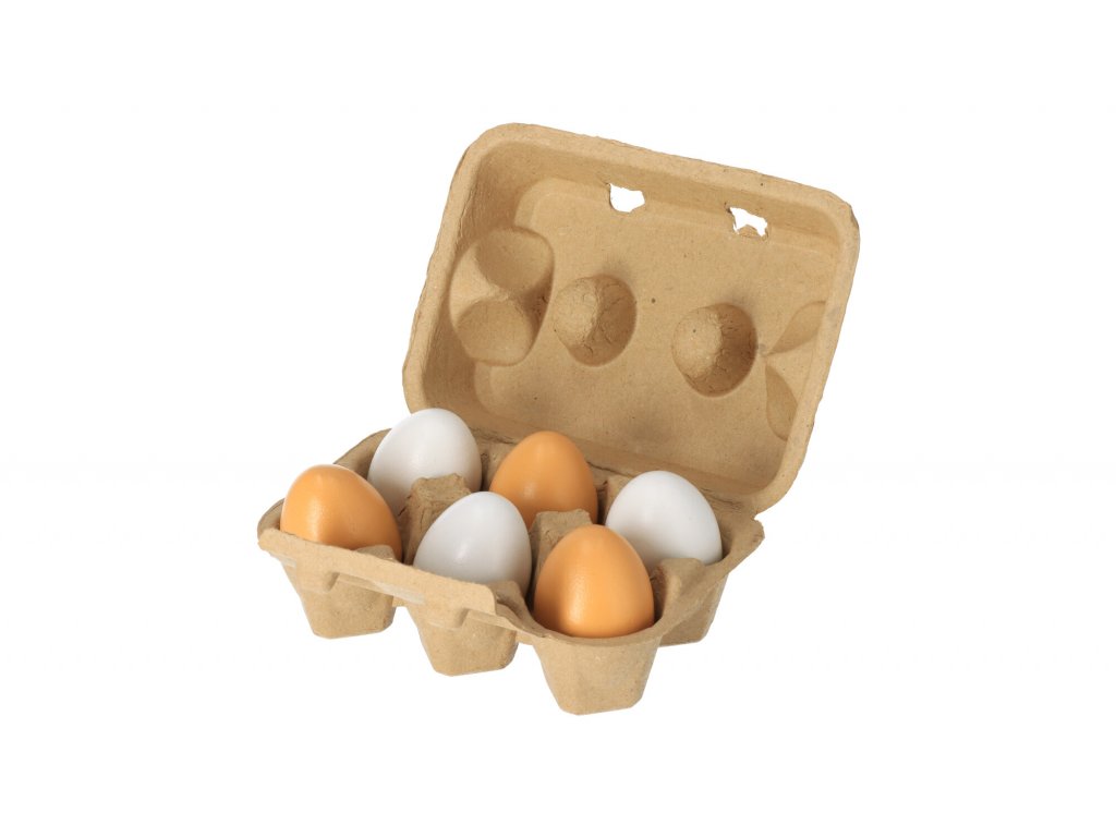 Egy kartondobozban lévő 6 db kétféle színű fa tojáskészlet nem hiányozhat egyetlen gyerekszobából vagy gyerek konyhából sem.