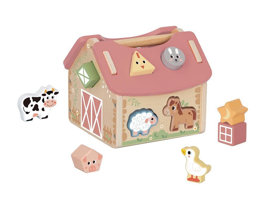 Fedezd fel a vidéki élet varázsát egy fából készült farm segítségével, ahol állatok várják a kis felfedezőket hosszú órákon át! Ez a gyönyörűen kidolgozott farmjáték szórakoztató tanulási élményt kínál - a gyerekek az egyes állatokat és formákat a megfelelő nyílásokba illesztik, miközben játékosan ismerkednek a körülöttük lévő világgal.