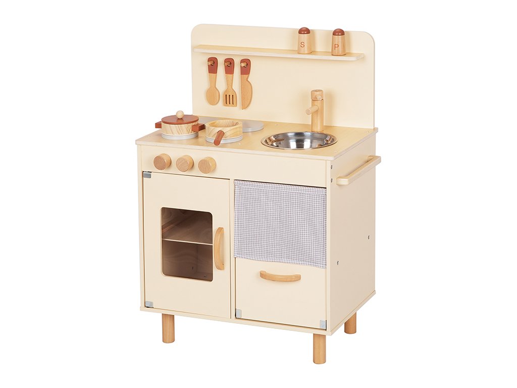 A kis szakácsok remekül fogják szórakozni ezzel a gyönyörű, fából készült gyerekkonyhával. A valósághű kialakításnak és a gazdag kiegészítőknek köszönhetően a gyerekek kipróbálhatják a főzést, a sütést és kedvenc ételeik elkészítését.