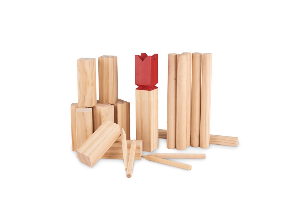 A fából készült Kubb kerti játék bármilyen szabadtéri összejövetelt izgalmas és szórakoztató tornává varázsol. Csak állítsd össze a darabokat, osszátok csapatokra, és már kezdődhet is a játék!