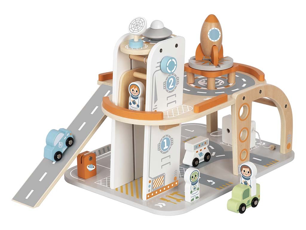 Fedezz fel egy fából készült űrállomást rakétával, járművekkel és űrhajósokkal a végtelen kalandokhoz! Tökéletes ajándék a kis felfedezőknek, és elengedhetetlen darab minden gyerekszobában.