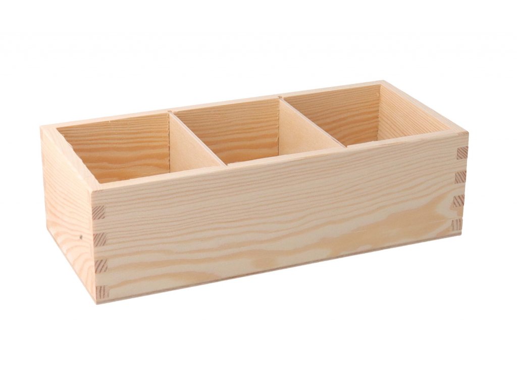 A praktikus fenyőfából készült szervező segít rendet tartani, miközben melegséget visz a belső térbe. Az elválasztóelemek könnyen kihúzhatók, hogy a doboz belső méretét beállíthassa.