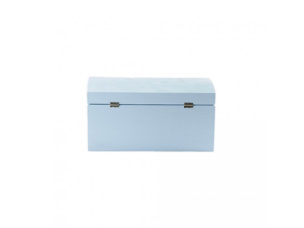 A borovifenyőfából készült láda világoskék árnyalatú lakkozást kapott, és ennek az eredeti megjelenésnek köszönhetően kétségtelenül gyönyörű dísze lesz bármely belső térnek.