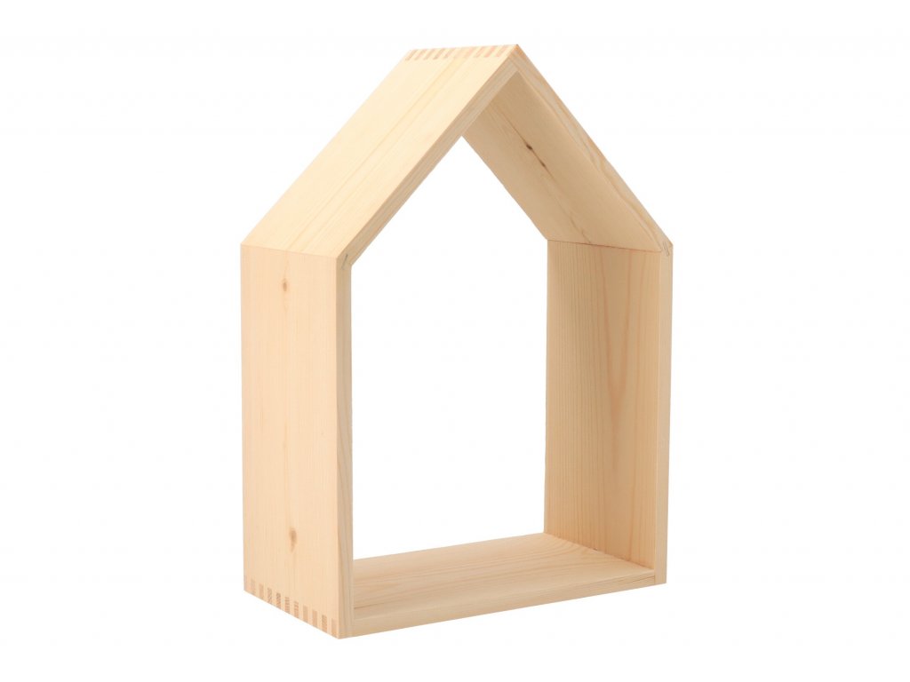 A ház alakú polc bármelyik gyerekszobát feldobja. Tiszta, kezeletlen fából készült, így fantáziáját szabadon engedve díszítheti tetszése szerint. Ha a polcot a falra szeretné akasztani, akkor lyukat kell fúrni bele, vagy kampót kell rögzíteni. De helyezheti polcra vagy komódra is.