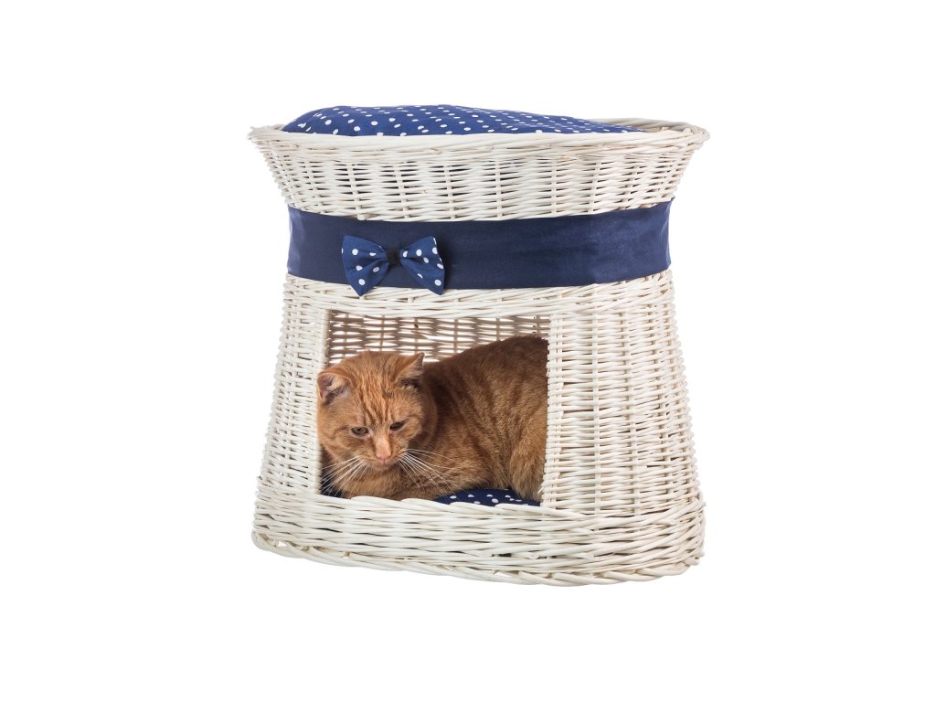 Fonott alvóhely házikóval kisállatok számára - fehér - bélelt