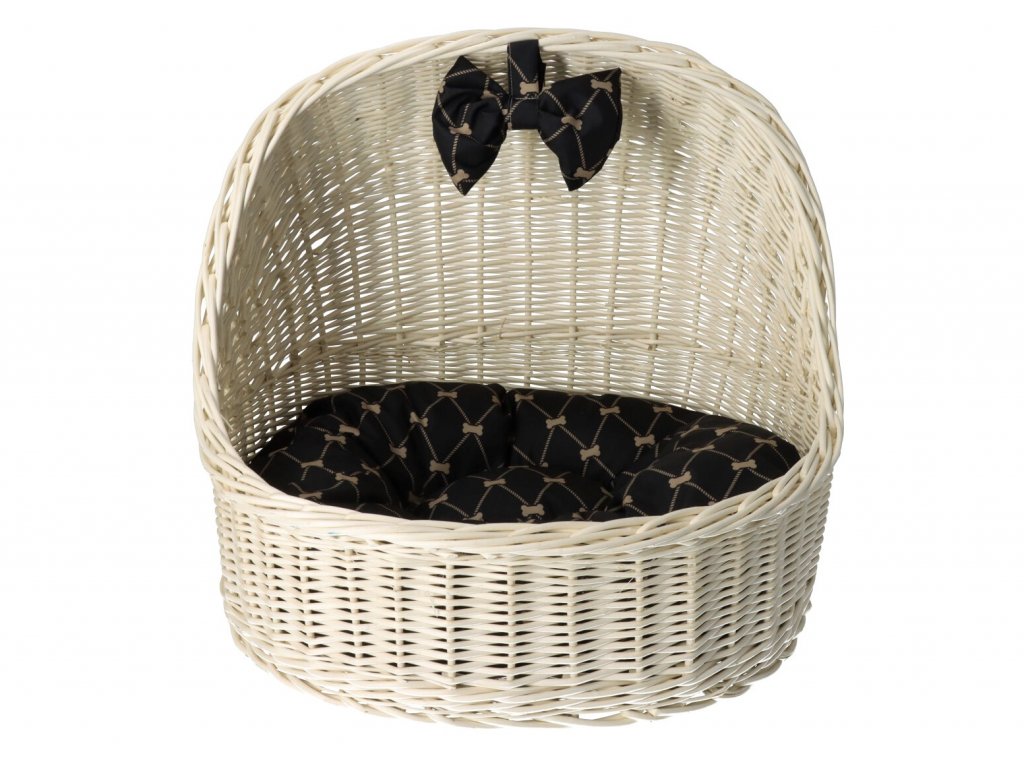 Fonott kutyafekhely tetővel - fehér-fekete masnival díszített