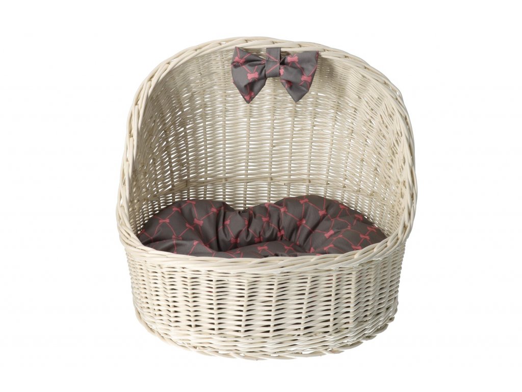 Fonott kutyafekhely tetővel tetővel - fehér, szürke masnival díszített