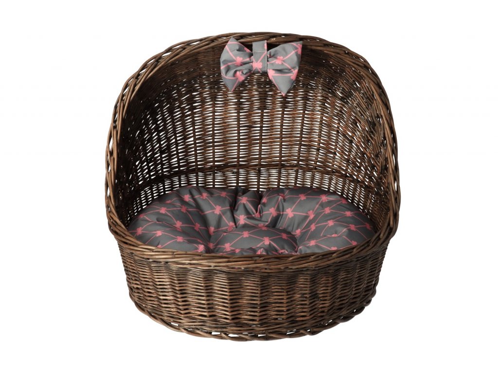 Fonott kutyafekhely tetővel tetővel - sötét, szürke masnival díszített