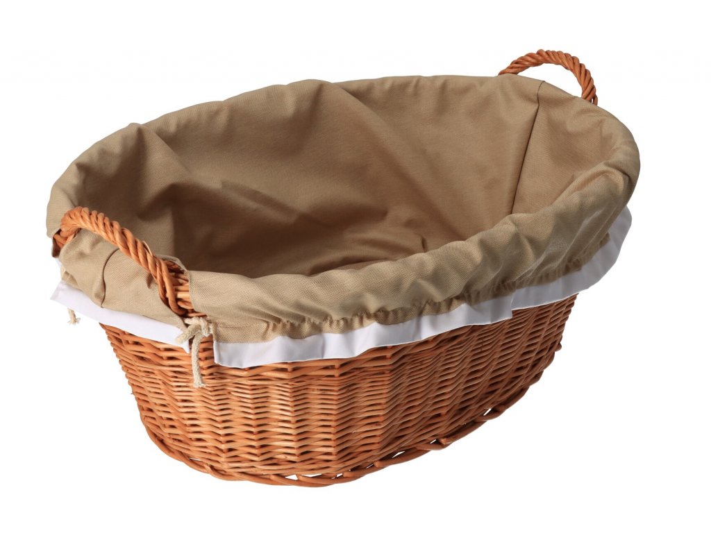 A kosár elegáns bézs színű anyaggal van bélelve, amely könnyen eltávolítható és mosható.