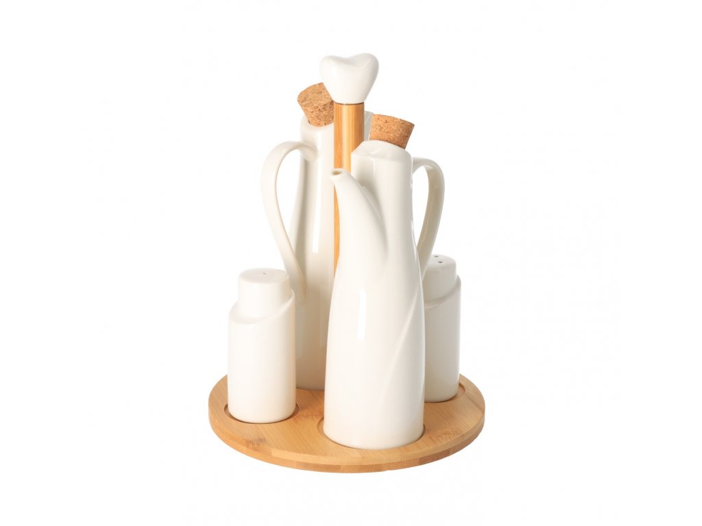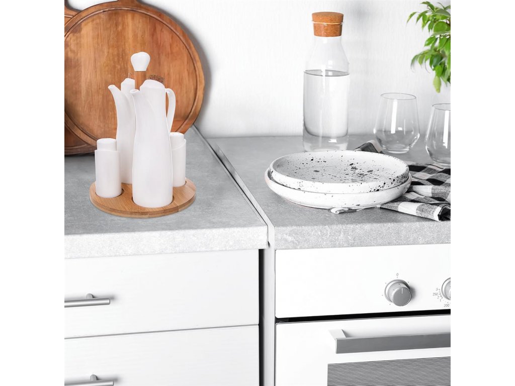 A stílusos megjelenésű, bambusztálcán elhelyezett fűszerkészlet lehetővé teszi, hogy az ételek fűszerezéséhez szükséges összes hozzávaló kéznél legyen.