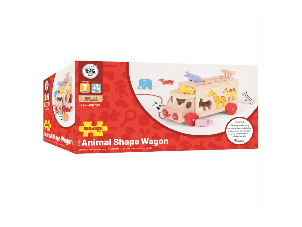 A készlet 11 állatot tartalmaz, melyeket alakjuknak megfelelően lehet beilleszteni az autóba.
