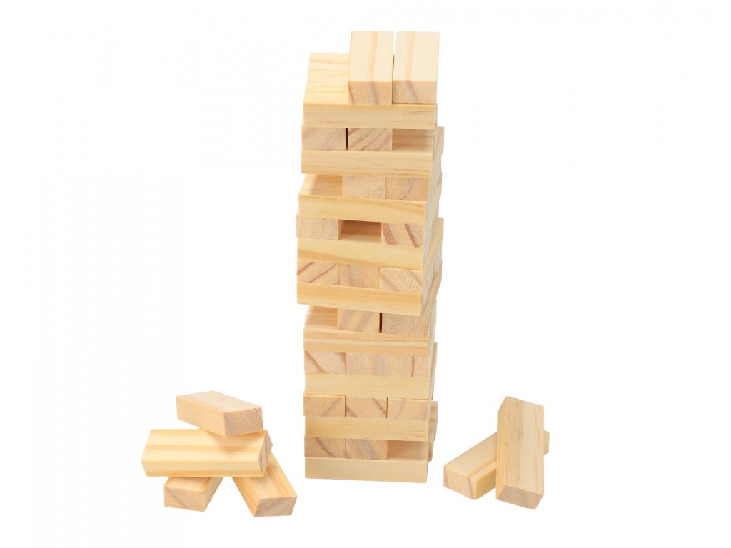 Az asztalon egy torony épül az összes kockából. A játékosok felváltva, egymást váltva óvatosan eltávolítanak egy-egy követ a toronyból anélkül, hogy a torony leesne. Az a játékos nyer, aki utoljára vesz le egy kockát a toronyból, és visszahelyezi a torony tetejére, mielőtt az leesne!