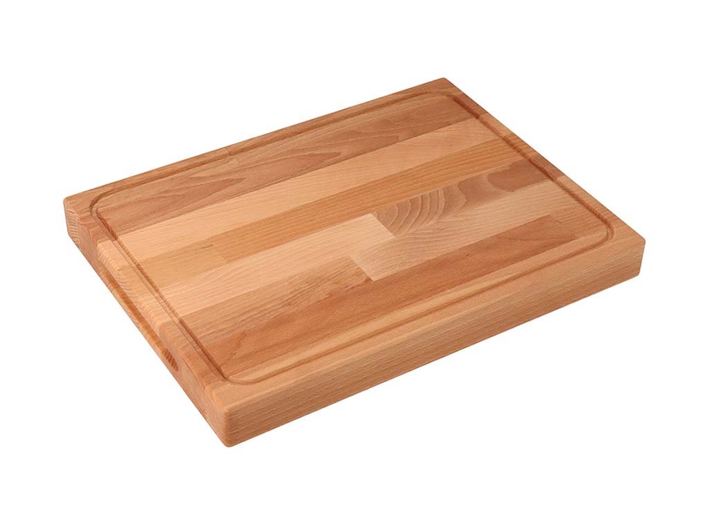 A 40 x 30 x 4 cm méretű tömör fa vágódeszka sütemények, zöldségek és húsok vágására és tálalására szolgál. Kiváló minőségű gőzölt bükkfából készült.