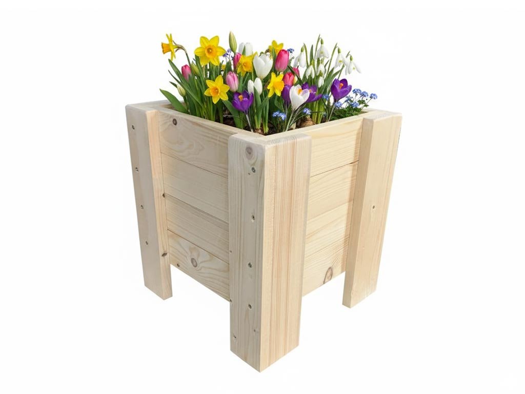 Négyzet alakú fa virágláda 33 cm - fenyő