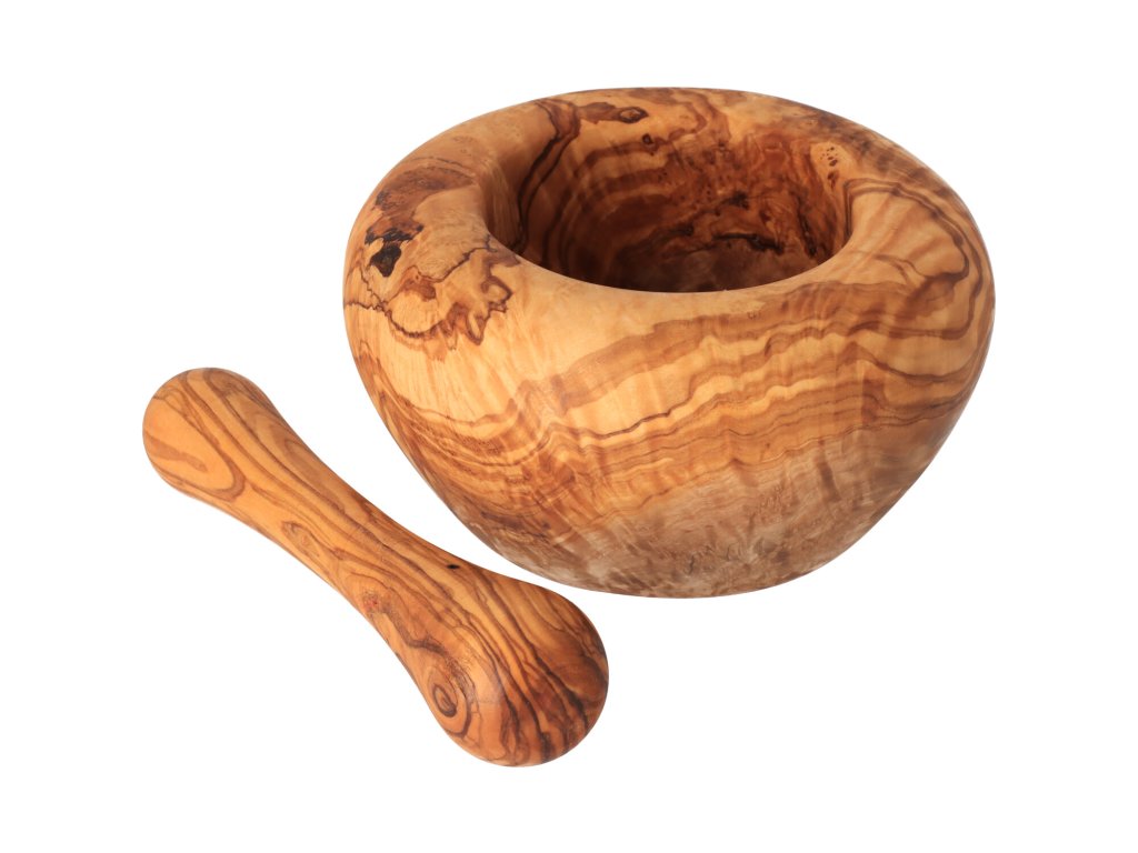 Az olajfa mozsár lehetővé teszi a fűszerek kombinálását, mártások vagy pesto készítését. Nagyon erős és tartós, és szinte bármit morzsolhat benne.