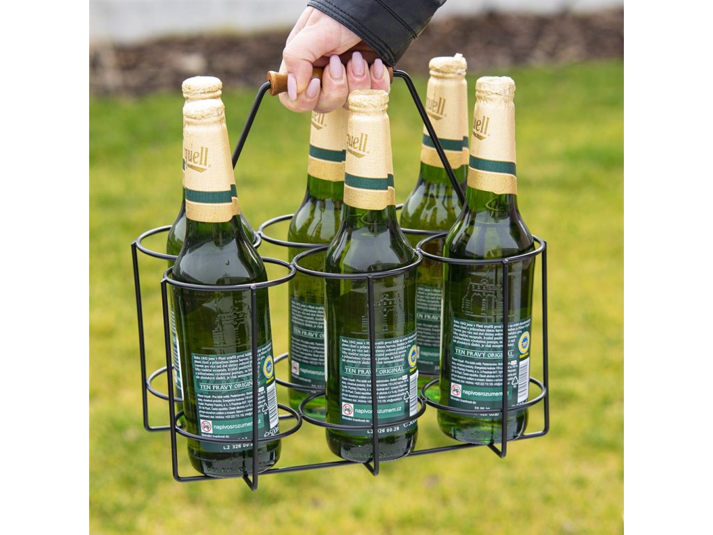 6 üveg sör cipelése mostantól gyerekjáték lesz. Ez a fémből és fából készült állvány a sör és más italok szállítását gyerekjátékká teszi.