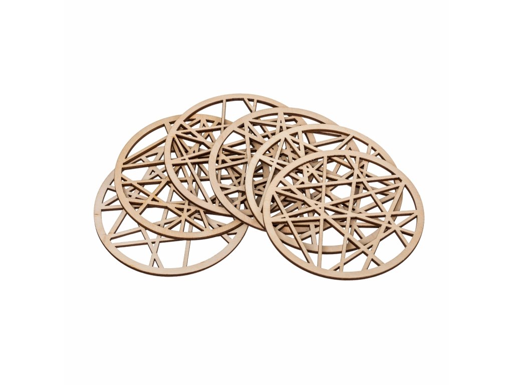 Bükk rétegelt lemezből készült alátét, amelyek alkalmasak poharakhoz és tányérokhoz. A készlet 6 darabot tartalmaz.