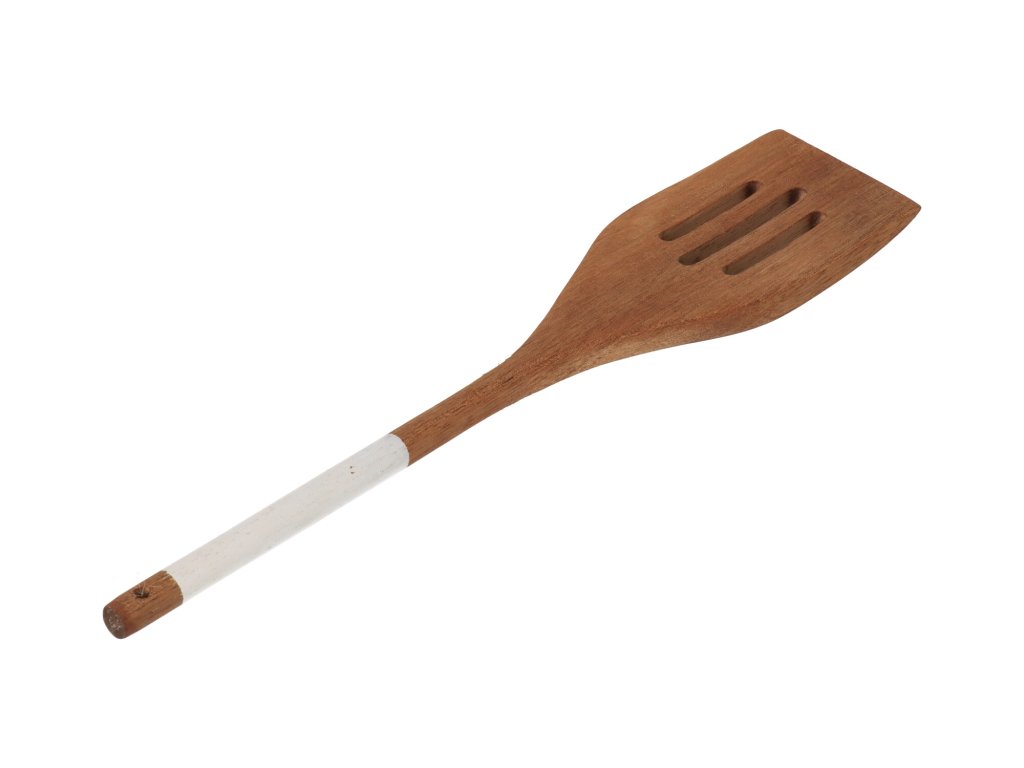 A praktikus akácfa lyukakkal ellátott, stílusos spatula minden konyhában jól mutat.